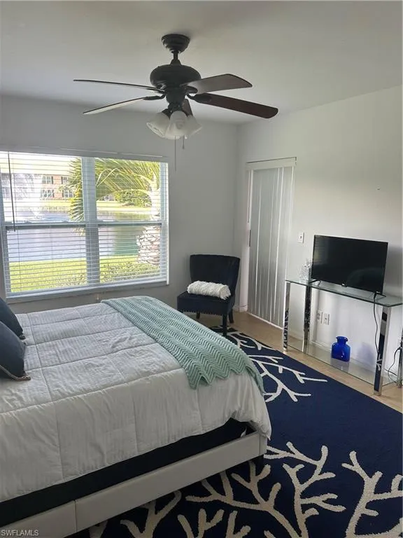 Enjoy effortless living in this move-in ready, beautifully updated, 1st-floor lakefront residence ideally located less than 10 minutes from the sugar-sand beaches, fine dining, and premier shopping of Olde Naples. Set against serene water views with a tranquil fountain backdrop, this home offers the ease of no stairs. The thoughtfully designed split floor plan features a generous-sized primary suite with private lanai access, a large walk-in closet, and a renovated en-suite bath showcasing granite countertops and a stylish tiled walk-in shower. The guest bedroom is comfortably sized with ample storage and easy access to a full guest bath—ideal for visiting family, friends, or a home office. Additional highlights include assigned covered parking conveniently located just steps from the unit, abundant guest parking, and access to Crown Pointe’s desirable amenities. Residents enjoy a resort-style pool with updated paver decking, BBQ grilling areas, and pickleball and tennis courts—perfect for embracing the Southwest Florida lifestyle. Whether you’re seeking an investment property, a seasonal getaway, or a forever retreat, this well-located lakefront condo delivers exceptional value just minutes from the heart of Naples.