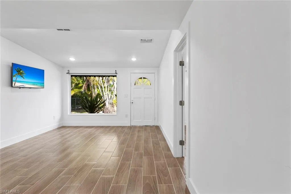 The home has been thoughtfully updated throughout, featuring new ceramic tile flooring, quartz countertops in both the kitchen and bathrooms, a stylish backsplash, and fresh white interior paint that creates a bright, clean, and contemporary feel. Major improvements include underground plumbing replaced in 2025, new drywall and baseboards, and updated A/C ductwork, providing peace of mind for years to come.